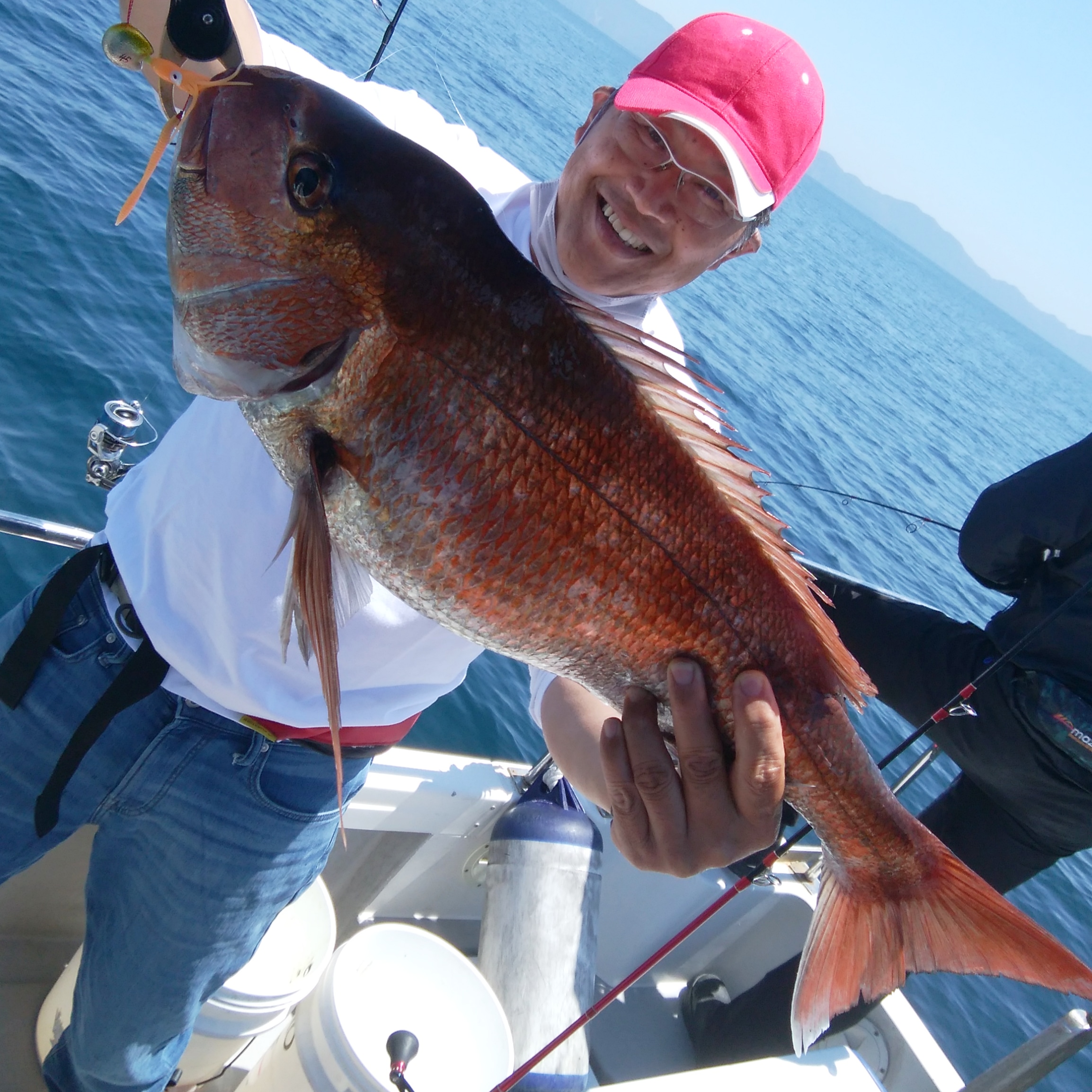 苦戦する船が多い中、3人でマダイを13尾捕獲。